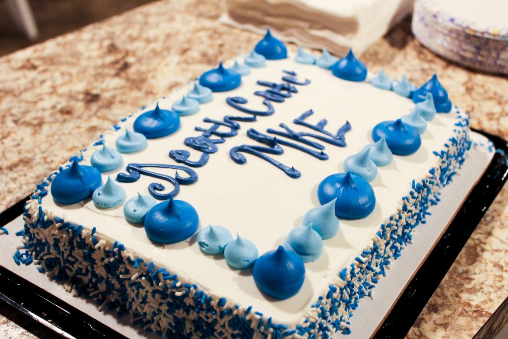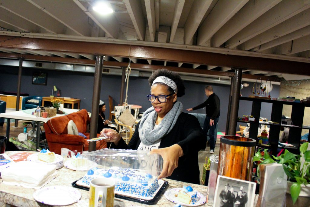 But on a sunny Sunday afternoon in mid-November, the space wouldn’t be filled with expectant mothers or playful children. Rather, the eight adults would settle onto two couches and a few chairs and introduce themselves, while Riley cut into a vibrantly-frosted cake that read “Death Cafe MKE” in blue cursive letters.