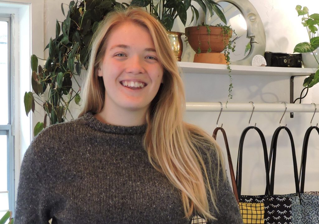 About an hour-and-a-half drive north of Green Bay, Hodkiewicz, 24, owns, operates and handcrafts unique merchandise for The Lightbox, a screen-printing studio and shop in Ephraim, Door County. A variety of Midwestern female artists work on commission, contributing ceramics, jewelry and other wearable art pieces to the shop’s inventory, but Hodkiewicz alone is in charge of sales. Throughout spring, summer and fall, every Thursday through Sunday, from 10 a.m. to 3 p.m., you can find her behind the shop’s counter — greeting customers, handling purchases and screen printing an assortment of products, from tote bags to underwear.